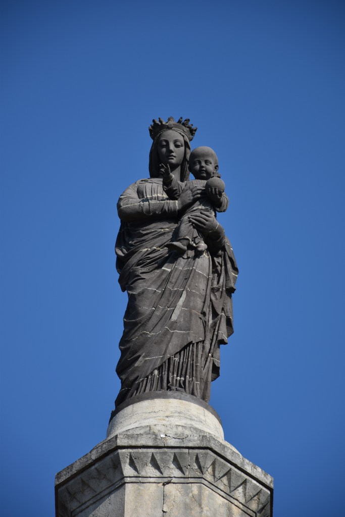 High on the hillside called Le Pipet a beautiful dark grey Virgin and Child watch over the ancient town of Vienne in the Valley of the Rhône. Yet today no plaque, no literature, no inventory, no blog, recognise the author of this statue inaugurated on its tower of red bricks in 1858.