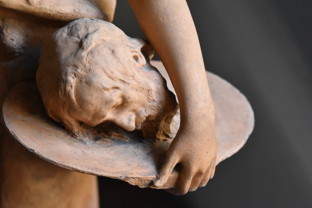 Barrau exposa le plâtre de Salomé au Salon de 1882, et une version en marbre du sujet au Salon de 1889, tous les deux disparus. Donc cette terre cuite reste le seule version connu d’une œuvre importante par le sculpteur carcassonnais.