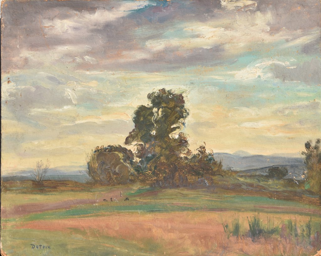 Etiquette sur le dos : A. DETEIX / No P.46 / Paysage à l’arbre / PRIX 800.00 (FF)