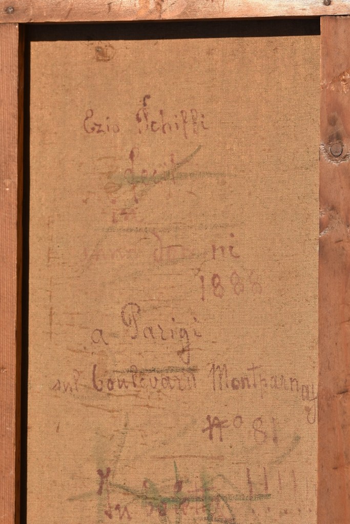 Inscrit sur le dos de la toile : Ezio Schiffi / Fecit / Anno Domini 1888 / A Parigi / Boulevard Montparnasse no 81