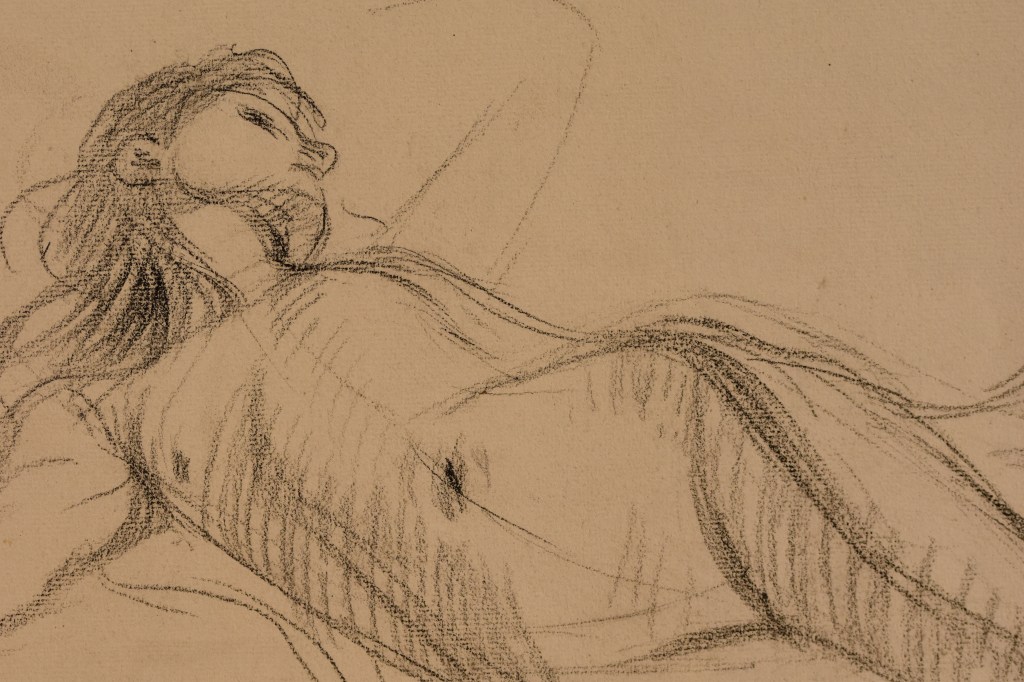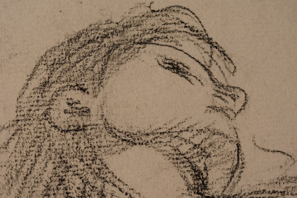 Crayon noir sur papier beige