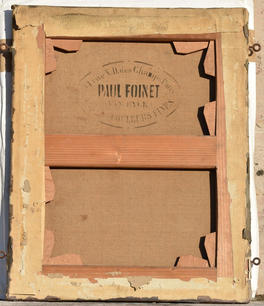 Toile avec la marque de Paul Foinet, 34 rue N.D. des Champs, Paris