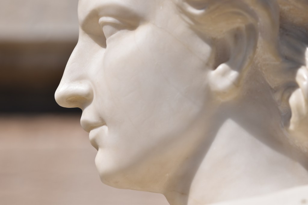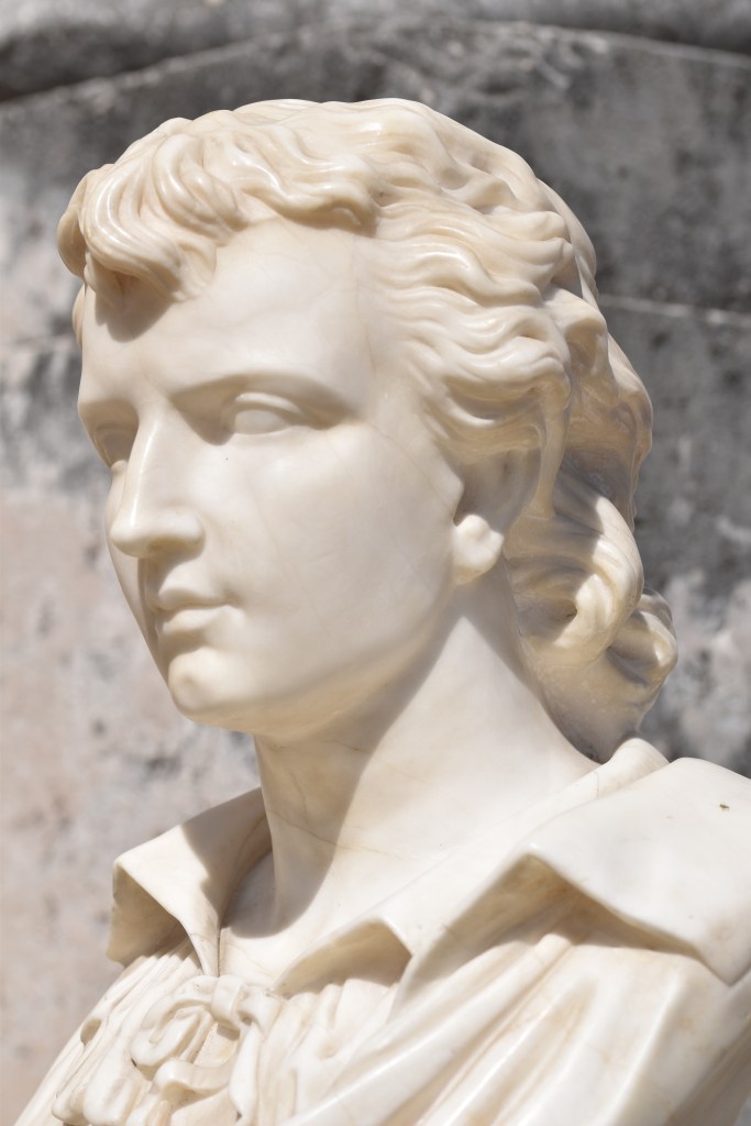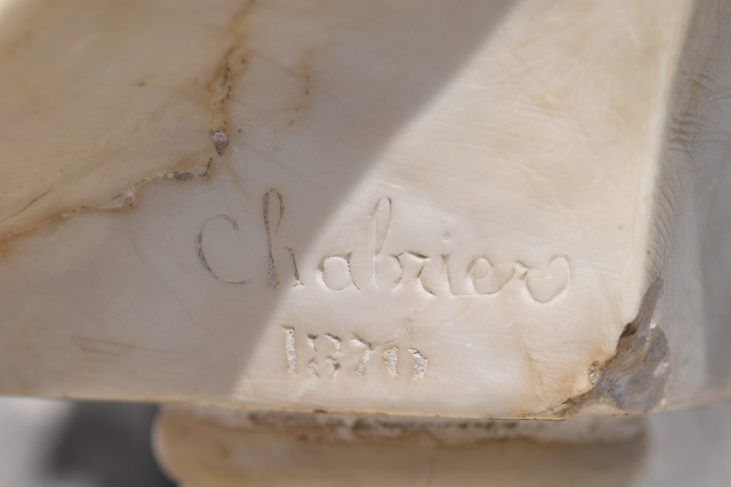 Frédéric Mistral publia son poème Calendal en 1867 seulement trois ans avant Chabrier sculpta son buste du héros. Pour la tête de Calendal, Chabrier fut probablement inspiré par les antiquités au musée d’Arles. On trouve un excellent compte rendu des sculptures de Chabrier dans Ferdinand Saurel et Alfred Saurel, L’Histoire de la ville de Malaucène et de son territoire, Tome 2 (Avignon 1883). Les auteurs mentionnèrent particulièrement notre buste de Calendal, mais ça vaut la peine de lire le passage complet, c’est vraiment intéressant et nous trouvons que Chabrier et Mistral furent correspondants.