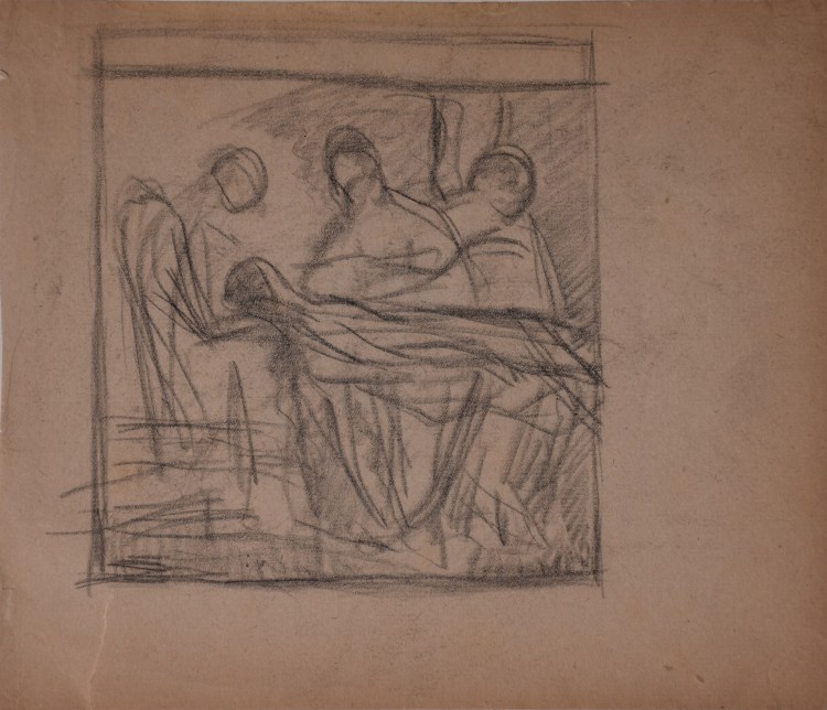 Il s’agit d’une premier pensée pour le grand tableau en huile, Les Funérailles du Christ, à l’église Saint Pothin, Amplepuis