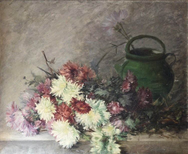 Peintre et dessinateur textile stéphanois, Chalayé fut d’abord élève à l’École régionale des arts industriels de Saint-Étienne suivit par trois ans à l’École des beaux-arts de Lyon où il fut élève de la célèbre « classe de fleurs » (très évident dans ce tableau). Après Lyon, il entre en 1899 à l’École nationale supérieure des arts décoratifs de Paris, et aussi l’École nationale supérieure des beaux-arts dans l’atelier de Fernand Cormon. Après cette formation il poursuivit une carrière très importante pour l’industrie de dentelle en France à Puy et à Roubaix. Même si Chalayé était stéphanois et pas seulement un peintre de fleurs, ce tableau est un superbe exemple de fleurs de l’école lyonnaise au premier quart du 20e siècle, et on peut dire que cette compétence est la fondation de l’art de Chalayé.