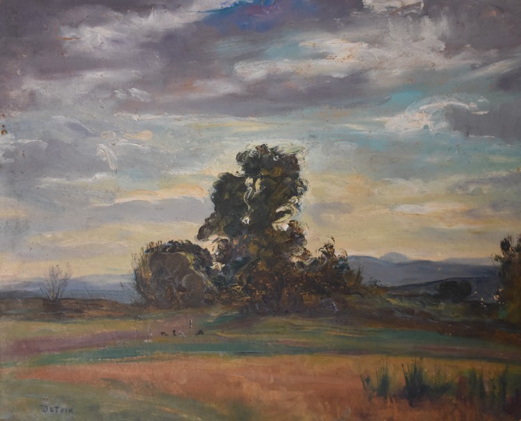 Etiquette sur le dos : A. DETEIX / No P.46 / Paysage à l’arbre / PRIX 800.00 (FF)