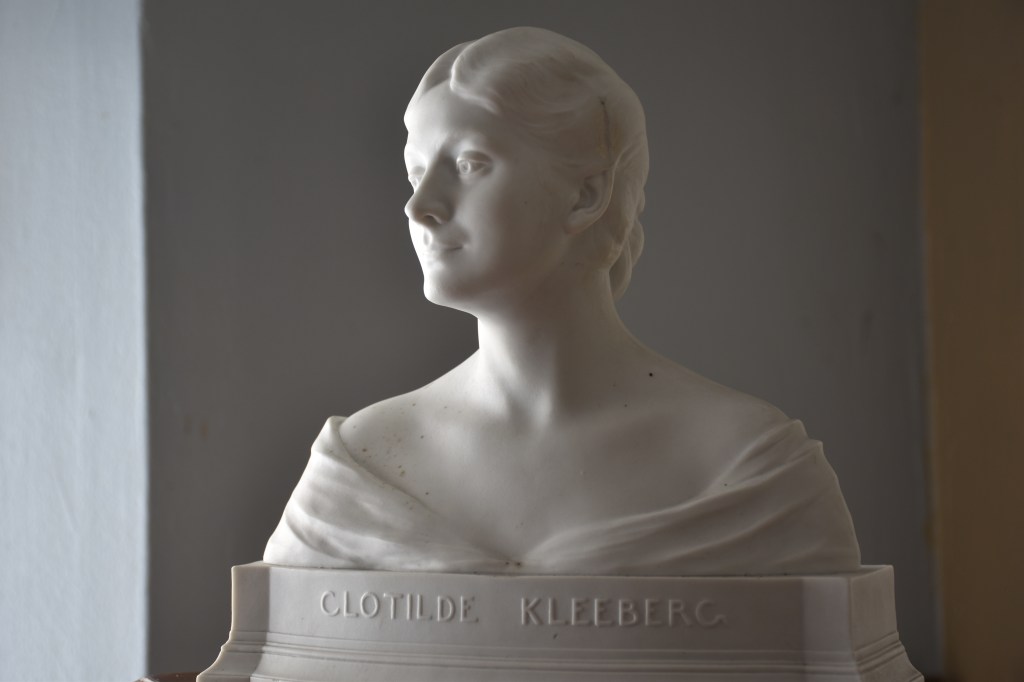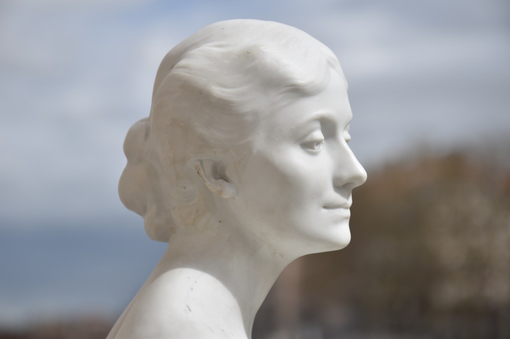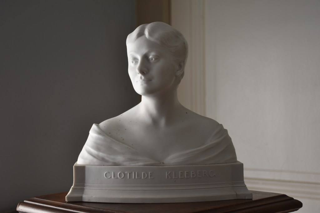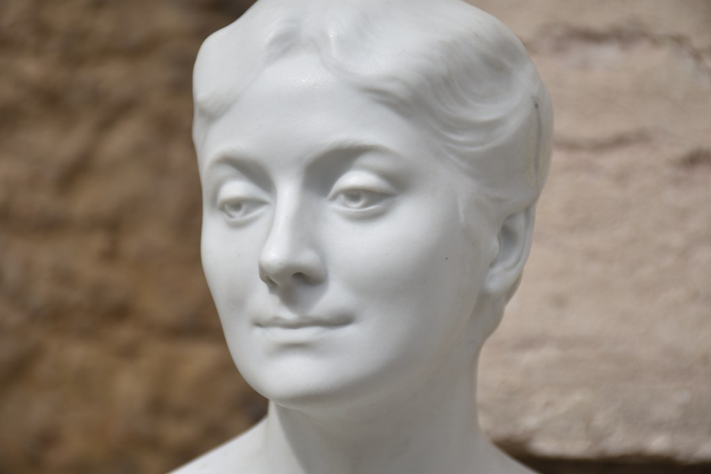 Charles Samuel, portrait en biscuit de porcelaine de la pianiste virtuose, et sa femme, Clotilde Kleeberg (Paris 1866 – Bruxelles 1909). Je crois que ce buste dérive de la sculpture Hommage (1903) conservé aux Musées royaux des Beaux-Arts de Belgique et que il était possiblement une édition à commémorer la morte de la grande pianiste en 1909 à l’âge de 42 ans. Concernant la manufacture du biscuit je crois qu’il pourrait être de la manufacture d’Ixelles.