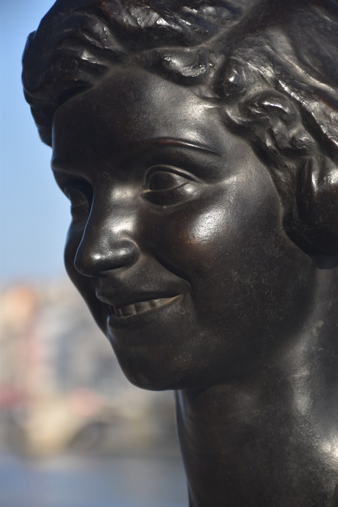 Il s’agit d’un buste à la fois remarquable et étrange. Chaque face présente quelque chose de différent au spectateur, de gauche et de droite, elle semble à une adolescente, mais de face, c’est une femme. Son sourire radieux, ses lèvres entrouvertes, ses dents éclatantes, et ses pommettes levées font d’elle une belle jeune femme, tout en reflétant une forte personnalité. Avec sa coupe bob, elle est une jeune femme à la mode de son époque. Néanmoins, avec son long cou, son menton fendu, et ses yeux mystérieux, elle possède aussi une allure d’un autre monde. C’est un portrait naturel, plein de joie, avec une dimension mythologique. Si elle était une œuvre du 18e siècle, on appellerait la Jeune romaine de Louis Bertola un portrait de fantaisie.